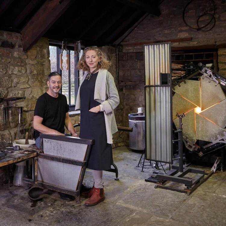 Studio Gillies Jones is a Yorkshire hot glass studio run by the life and creative partnership of Stephen Gillies b. 1967 and Kate Jones b. 1966. The pair met when Gillies was studying glass design at Stourbridge and Jones fine art and they established their studio in 1995. They have received worldwide recognition for their complex cameo works, the traditional methods they use are practised by only a few glass makers across the world. This process involves the folding of different coloured glass bubbles over each other to produce a complex multi-layered and coloured piece. Works are in many public and private collections including: Fitzwilliam Museum, Cambridge; Ebeltoft Glass Museum, Denmark; Kanazawa, Japan; Bowes Museum and V & A Museum, London.