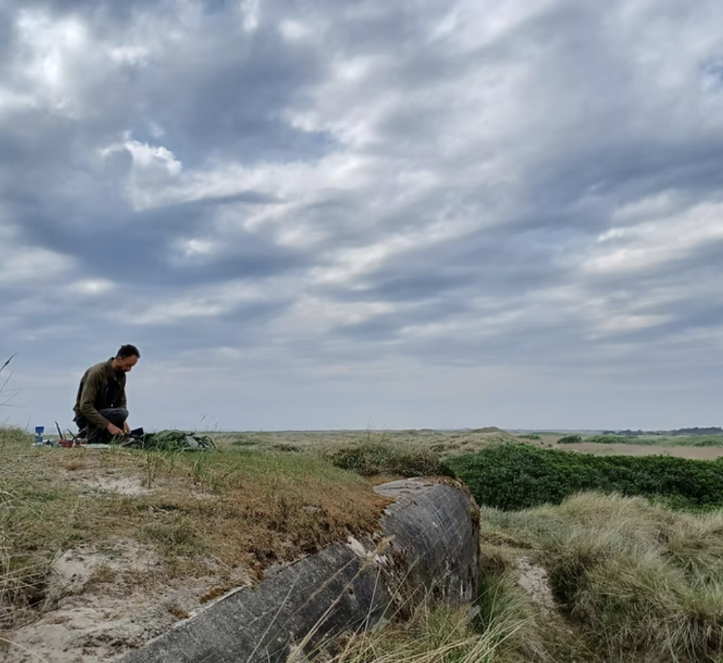 Pollard’s paintings and drawings are often developed through extended periods working outdoors, responding to specific places and ecosystems through sustained observation. His practice moves between fieldwork and studio experimentation, where printmaking allows him to further explore the textures, marks and impressions gathered on site. Through this process he seeks to capture not only the appearance of a landscape or species, but also the atmosphere, rhythm and sense of time embedded within it.